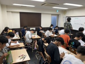 こちらからテキストの演習ページを指定し、生徒がそのページの問題を演習している所を講師陣が随時指導しながら巡回するスタイルの授業です。講師主体の講義ではなく生徒が主体となり個々に問題演習を重ねるスタイルです。