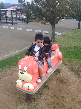 ちなみに、外には2枚目の写真のような遊具(正式名称は知りませんが、娘は「ワンワン列車」と読んでいました)や、