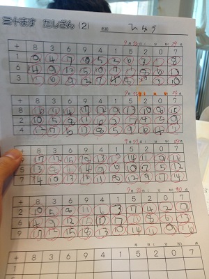 しかも、追加で30マス計算も1枚(30マス足し算×4題)もやっている…