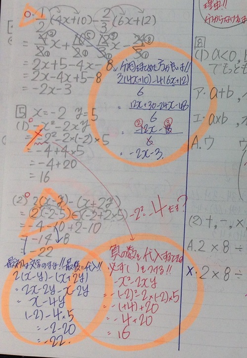 こういう所を「今」修正させ、脳に定着させておくことで来年(中2の)4月の数学の指導が楽になります。
