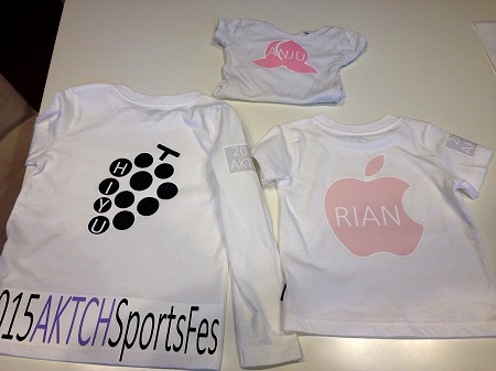 で、そんな子供たちの様子を見て、奥様は3人が属するクラスの果物に合わせてTシャツを手作りで作成してました。