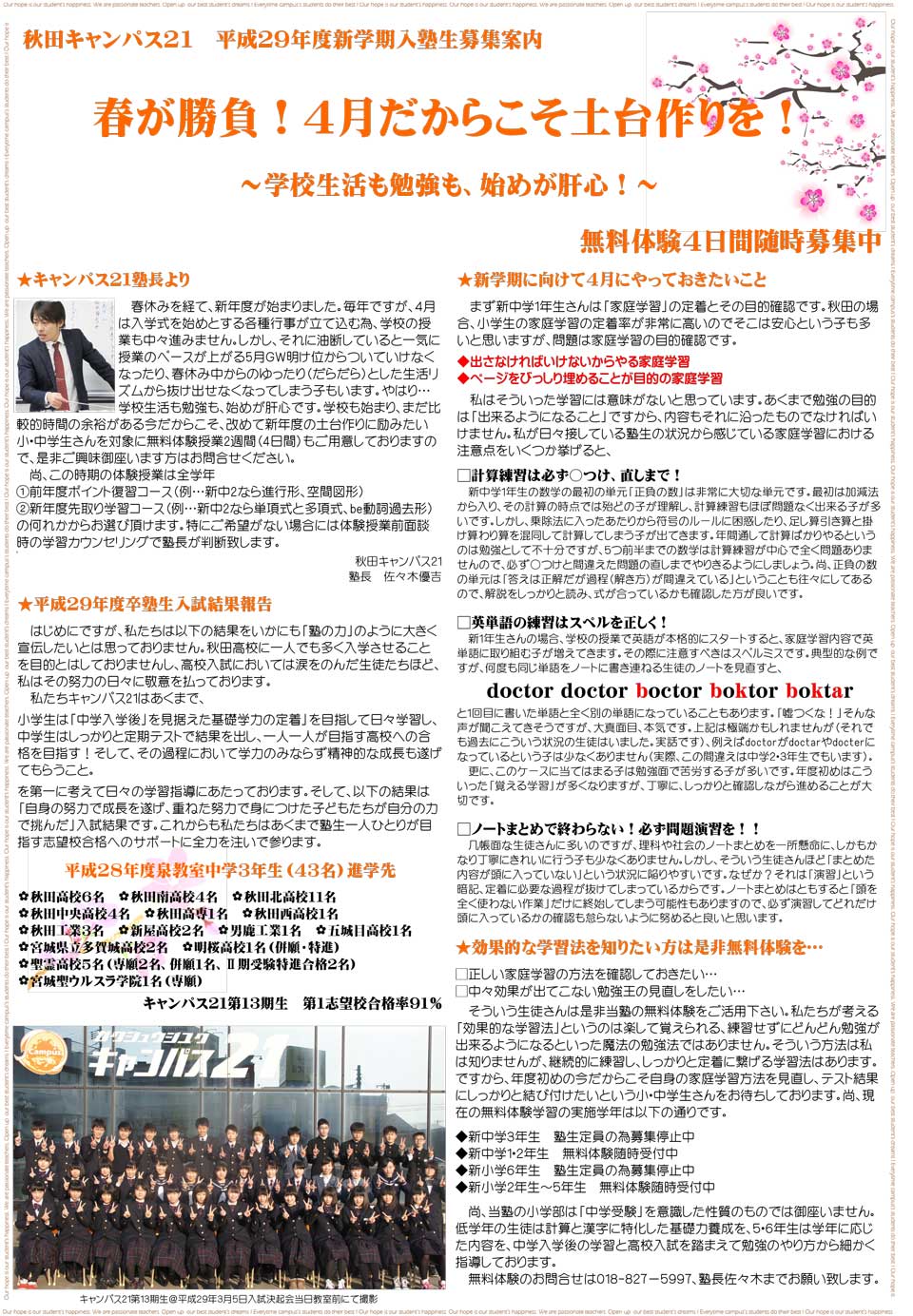平成29年度新年度生募集