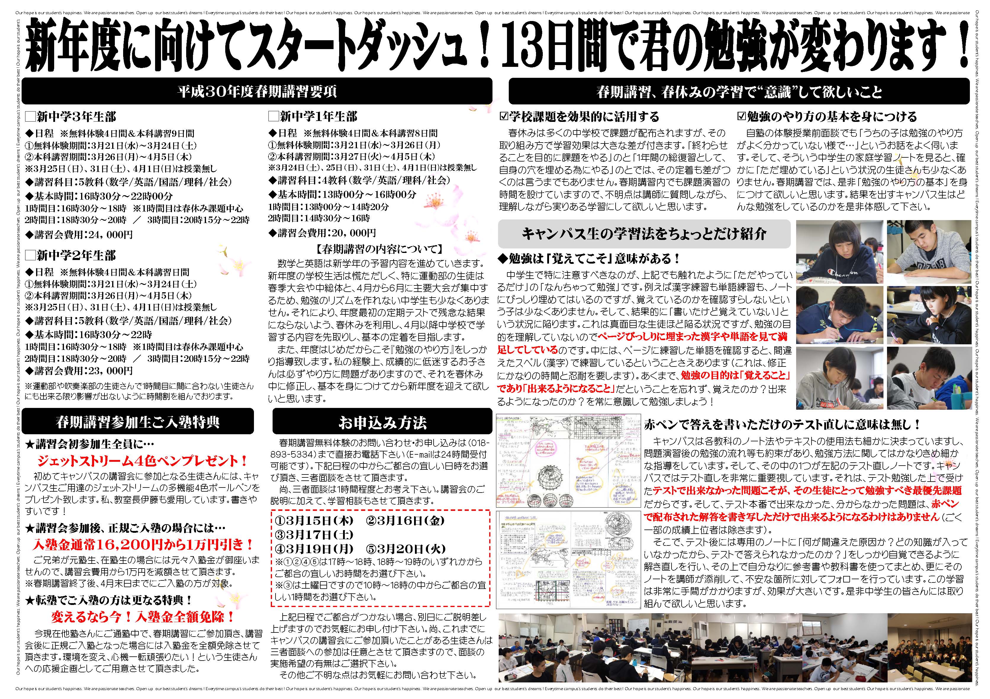 平成30年度春期講習ご案内【勝平教室】PDF一括ダウンロードはこちらから