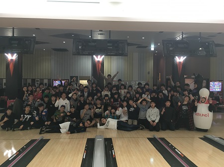 昨日のボーリングの集合写真と卒塾生とのご飯と…
