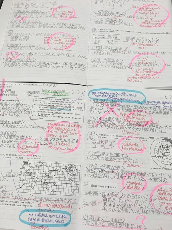 既に定期を終えた1年生のある生徒が直しノートを5科完了しました。