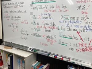 ホワイトボードに板書しながら授業をやりました。