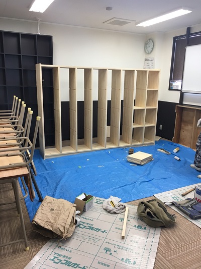 現在2階では学童用のランドセル棚を大工さんが丁寧に作って下さっていますし、