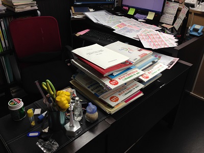 ちなみに、その作業期間の僕の机は、終わりが見えて大分整理されてきた時点でこんな感じです…
