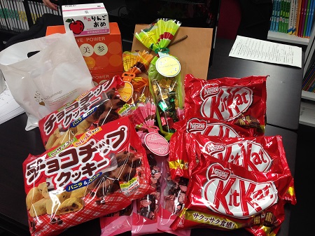昨日は9期生のたっくが、今日は7期生のさやかと勝平教室の諒が、後輩たちの為に差し入れを持ってきてくれました。