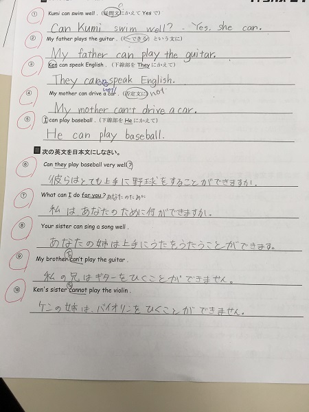 本日の小学生英語教室も終え、結果的に1名を除き基礎クラスは一発合格だった確認テスト。ですが、その答案用紙を見ると「ここから苦戦するかな…」という子と、「ここからもっと伸びるだろうな…」という子に分かれます。ちなみに…もっと伸びていくだろうな…という子はこういう答案用紙。