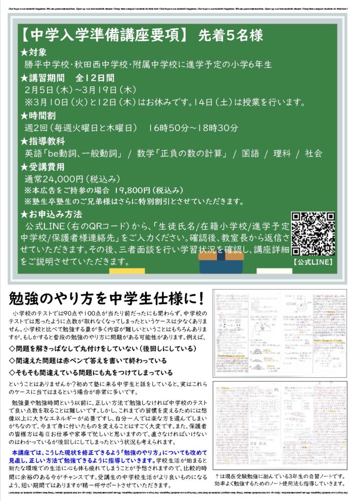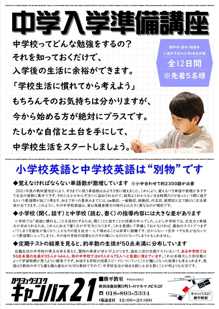 【中学入学準備講座のご案内】